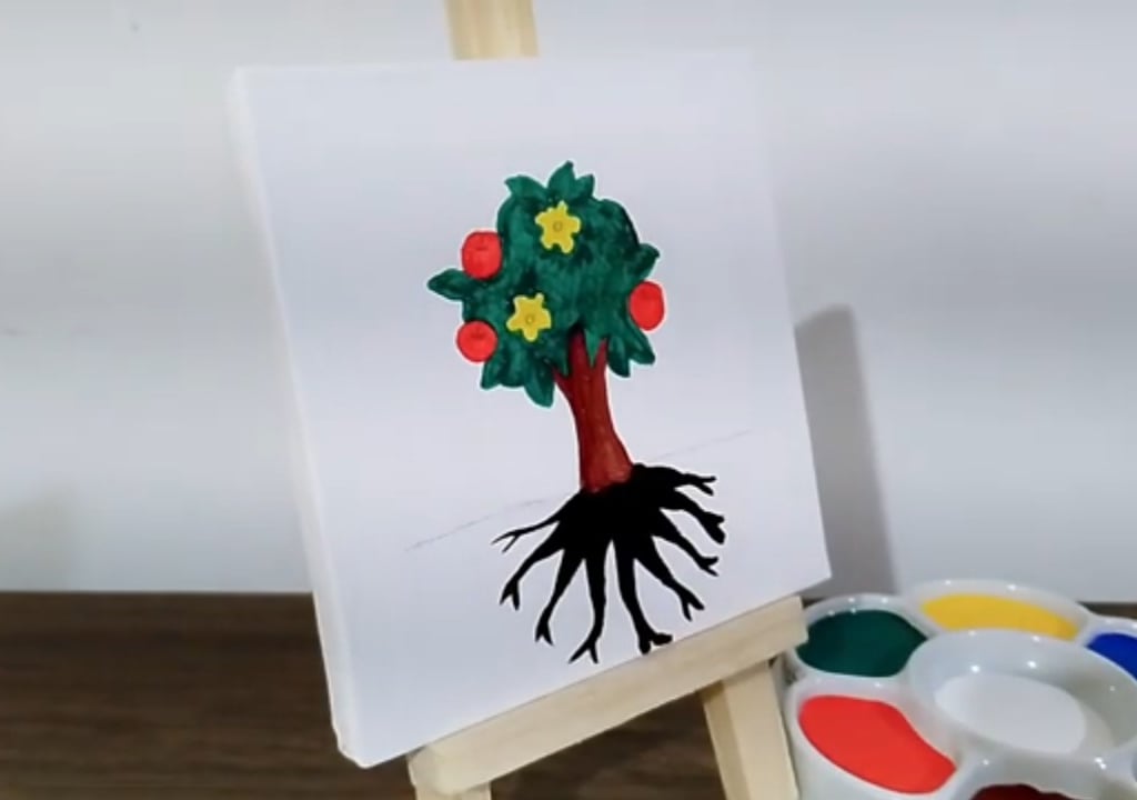Vamos começar pintando o caule, que nas árvores é chamado de tronco.